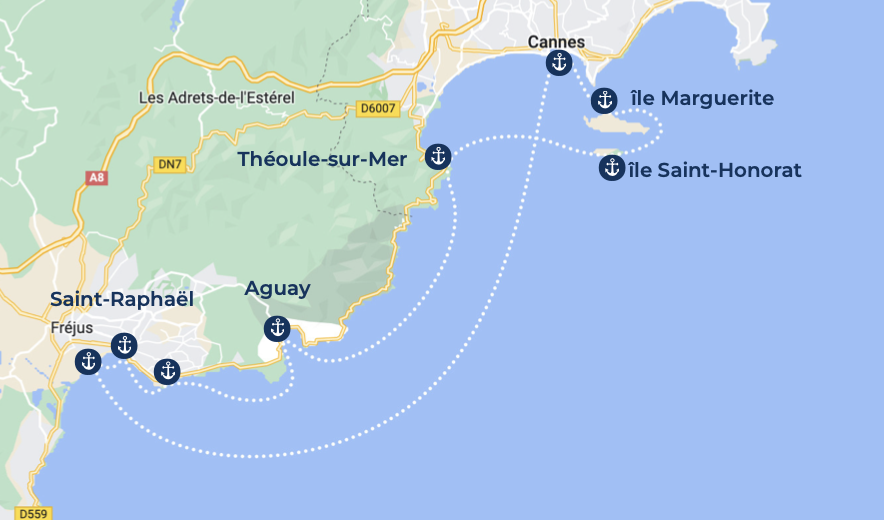 Profitez d’une journée de navigation au départ de Fréjus, et partez à la découverte des arrêts idylliques et incontournables de la région. Vous serez sous le charme des merveilles du monde sous-marin de la côte d’Azur et du littoral de l’Estérel ! Fréjus-Plage, avec son kilomètre de sable fin et ses eaux turquoise, symbolise parfaitement la beauté et l’attrait de cette région.