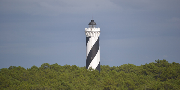 Construit sur une dune de sable de presque 12 mètres de haut et à moins d’un kilomètre des côtes, le phare est mis en service dès 1863. Haut de 41 mètres, sa lampe balise le territoire à 42 kilomètres à la ronde. Comme pour le phare de Créac’h, il est possible de visiter un musée au pied du phare.