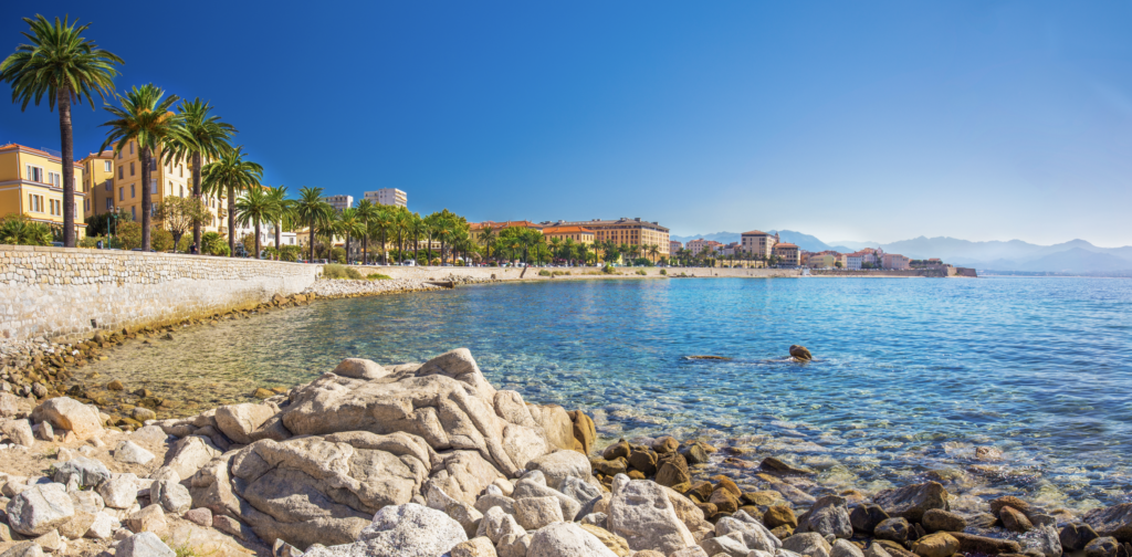 Vous n’êtes plus qu’à quelques milles des terrasses, des plages de sable fin et des Monuments Historiques de la ville d’Ajaccio, lieu de naissance de Napoléon Bonaparte. Cette ville attire de nombreux touristes grâce à son micro-climat qui permet de s’y arrêter tout au long de l’année. Sans oublier la magnifique plage principale ! Nous vous conseillons de faire escale sur la plage de Saint-François, située juste avant la citadelle. Dans tous les cas, n’ayez crainte, il sera possible d’éviter la foule : les environs regorgent de petites criques accessibles uniquement par bateau.
