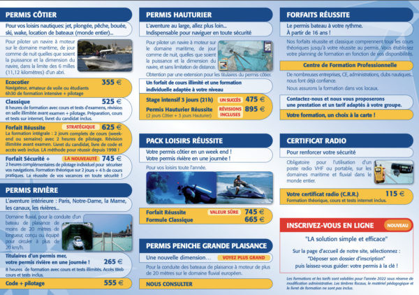 Exemple : pour un permis côtier semaine : 295 € 365 €