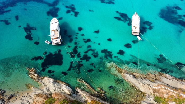 Pour cette dernière nuit en mer, vous pourrez mouiller dans une crique de galets, au bord d’une plage paradisiaque ou à la marina de Merichas, située sur la côte ouest de l’île.