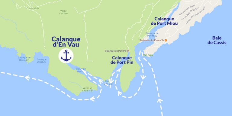 Naviguez tout droit en direction de Cassis pendant environ 30 minutes. Pour les curieux, passez par la calanque de Port Miou puis par la calanque de Port Pin, avant de jeter l’ancre dans la calanque d’En Vau, certainement la plus belle d’entre toutes, en tout cas la plus grandiose de par ses murailles de falaises.