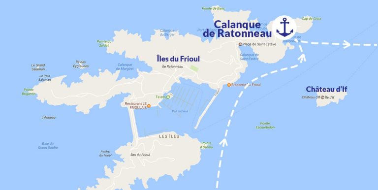 L’accès est un peu délicat (par un chemin un peu pentu) mais c’est la garantie de trouver un petit coin de paradis loin de l’agitation des grandes plages de l’île. Pour ceux qui préfèrent, vous pouvez choisir de faire escale au port du Frioul, plus simple d’accès, et y déguster une glace pour terminer la journée en beauté.