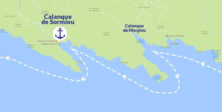 Commencez à lever l’ancre vers 14h45 pour rejoindre la calanque de Morgiou, puis celle de Sormiou. Comptez environ 45 minutes pour cette navigation en longeant les falaises.