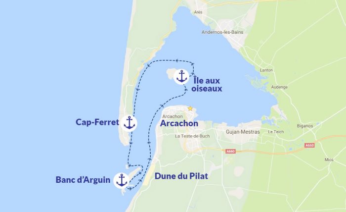 Avec les marées, les différentes passes et les bancs de sable, nous vous conseillons de télécharger l’application E-Navigation, qui vous suivra partout sur le Bassin afin d’y naviguer en toute sécurité.