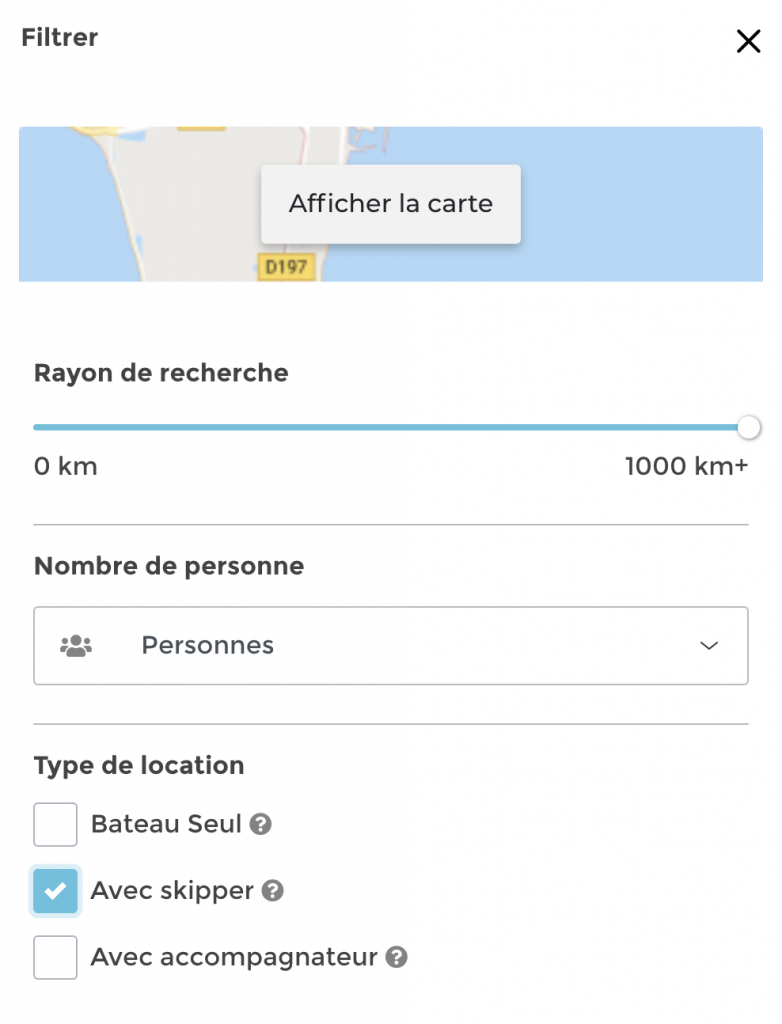 Lors de votre recherche de bateau sur notre menu d’accueil, cochez l’option Location de bateau avec skipper. Vous trouverez ainsi les bateaux disponibles à la location avec skipper. Vous pourrez directement contacter les propriétaires et organiser avec eux votre séjour. Il convient également de différencier la location de bateau avec skipper et la location de bateau avec accompagnateur. L’accompagnateur est présent avec vous sur le bateau, mais il ne touche pas aux commandes. Dans le cas d’une location avec accompagnateur, vous serez le chef de bord, alors que l’accompagnateur sera seulement présent pour vérifier que tout se passe bien.