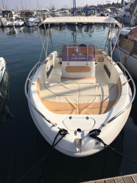 Ce magnifique bateau vous permettra de visiter la côte d'Alghero et de passer des journées amusantes en compagnie de votre famille ou de vos amis. Le Saver 5.50 est équipé d'un bain de soleil avant confortable avec coussins et d'un poste de pilotage central avec siège dédié et très commandes intuitives. Il est également équipé d'un auvent pratique pour vous abriter pendant les heures les plus chaudes de la journée, d'une douche d'eau douce. Le Saver est alimenté par un 40 chevaux, pour que vous puissiez les conduire même si vous n'avez pas de permis bateau et tenter une expérience nouvelle et passionnante. Il a une capacité maximale de 6 personnes, 5 adultes et un enfant. Le carburant n'est pas inclus dans le prix