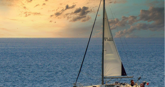 Il Capitano vi da il benvenuto a bordo del veliero "Alcyone", un Jeanneau Sun Odissey 42.2 ft (13 mt). Omologato CE in classe A(oceanica) può portare a bordo 10 persone(compreso l'equipaggio), in classe C 14 persone compreso l'equipaggio.