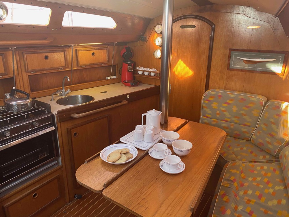 Avenir est ancien, très marin, tolérant pour apprendre. Un bateau à taille humaine, parfait pour initier deux jeunes de 11 et 14 ans. L'équipement est complet voire plus.