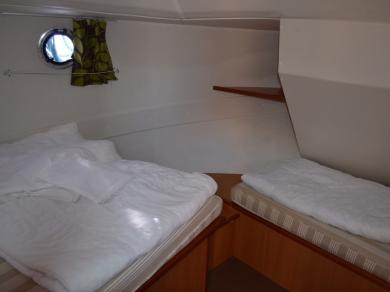 Le Tarpon 32, fleuron de la flotte Canalous, est idéal pour accueillir à son bord confortablement 4 à 6 personnes. Il est composé de 2 cabines avec lit double (chacune d'entre elles comprend également 1 lit simple) et d'un lit double dans le coin carré du bateau. Ce bateau habitable est équipé d'un coin cuisine, de 2 sanitaires (douche, lavabo et WC), d'un salon de pont extérieur, d'un double poste de pilotage, etc.