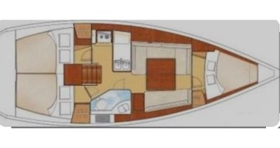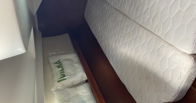 This boat is equipped with a Furling mainsail and a Furling genoa. It has the following equipment: Auto-pilot, TV, Speakers, USB plug, A/C.