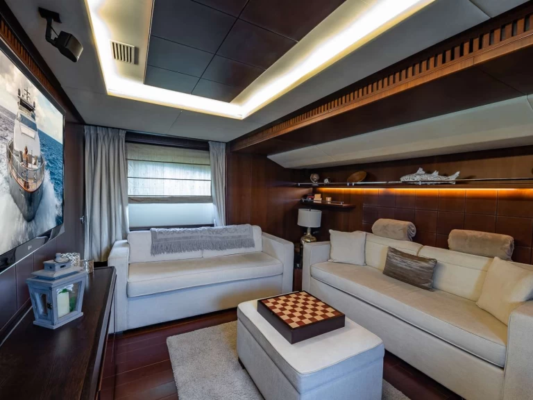 Il possède notamment les équipements suivants : TV, Haut-parleurs extérieurs, Wifi et internet, Douche de pont, Dessalinisateur, Barbecue, Climatisation.
