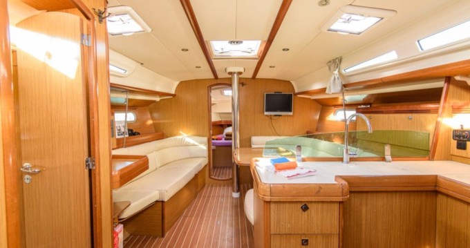 Le Sun Odyssey 42i, dessiné par Marc Lombard, allie élégance, performance et innovation. Avec un grand plan de voilure offrant de nombreuses options de voilure, il est adaptable aux différentes conditions de navigation. A l'intérieur, l'espace est bien organisé et personnalisable pour assurer un maximum de confort. Ce navire incarne à la fois le plaisir de naviguer et le luxe à bord, idéal pour une sortie en mer épanouie.