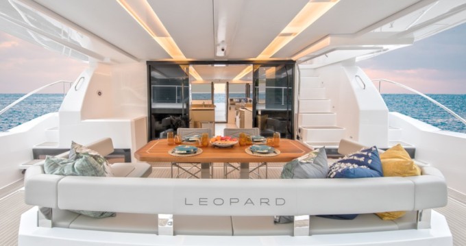 Fabriqué par le célèbre constructeur de bateaux sud-africain Robertson and Caine, le Leopard 46 Powercat a été méticuleusement conçu avec un objectif unique : offrir un confort et des performances inégalés par rapport à ses meilleurs concurrents. Disponible en versions trois et quatre cabines, le Leopard 46 Powercat offre des options d'aménagement exceptionnelles. La suite propriétaire à trois cabines comprend un spacieux dressing, un bureau et une double vasque. Les cabines d'invités VIP à l'avant offrent un grand espace avec des couchettes confortables et des salles de bains privatives. Les chambres ont été soigneusement améliorées pour créer une atmosphère chaleureuse, avec de nouveaux tissus d'ameublement, des lits exceptionnellement confortables et une utilisation optimale de l'espace.